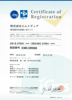 株式会社エルメディア(本社:東京都渋谷区、代表取締役:岩崎慈久)は、2010年5月29日付で、情報セキュリティマネジメントシステム(以下、ISMS)の国際規格である「ISO・IEC 27001:2005」及びその国内規格である「JIS Q 27001:2006」の認証を取得しました。