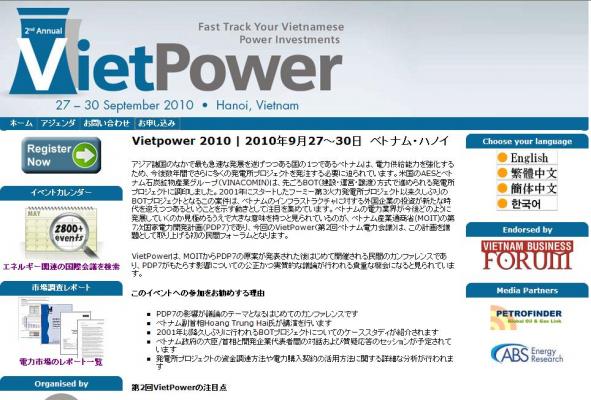 「Vietpower 2010」の情報を提供するとともに、会議の参加のお申し込みを承っております。