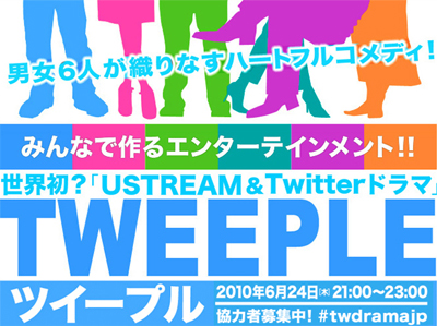 USTREAM×ツイッタードラマ「TWEEPLE」(ツイープル)のUSTREAM生放送とツイート配信を行います。