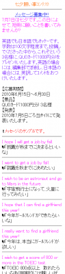 『ポケット英辞郎』では2010年6月15日(火)~6月30日(水)の間、ユーザーの皆様から、七夕にちなんだ願い事を募集します。応募作品は英語でも日本語でもかまいません。