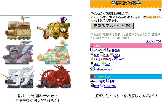3. 手にいれたアイテムやキノを使って、ハンターの戦闘車である「タンク」を強化し、