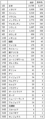 スペインやブラジルのような強豪国がオークション落札数にて上位にランクインしております。