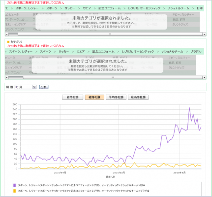 「各出場国別」商品のYahooオークション落札数動向