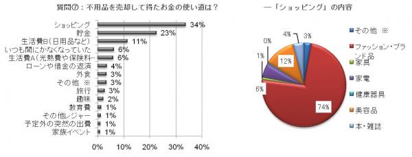 「貯金」、一方、「不用品売却金」の1位は「ショッピング」と、対照的な結果となりました。また、「ショッピング」の内容は、