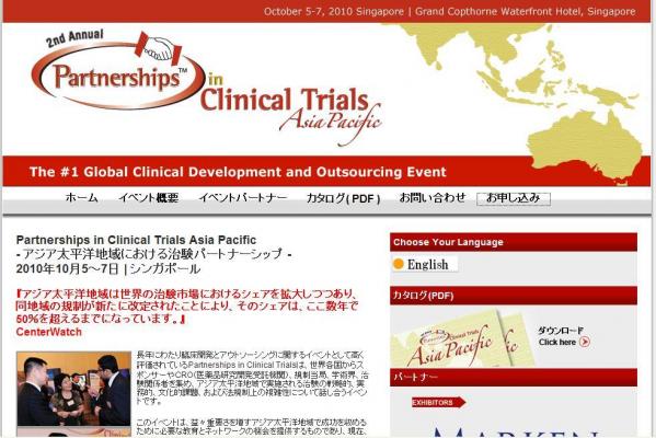 「Partnerships in Clinical Trials Asia Pacific (アジア太平洋地域における治験パートナーシップ)」の情報を提供するとともに、会議の参加のお申し込みを承っております。