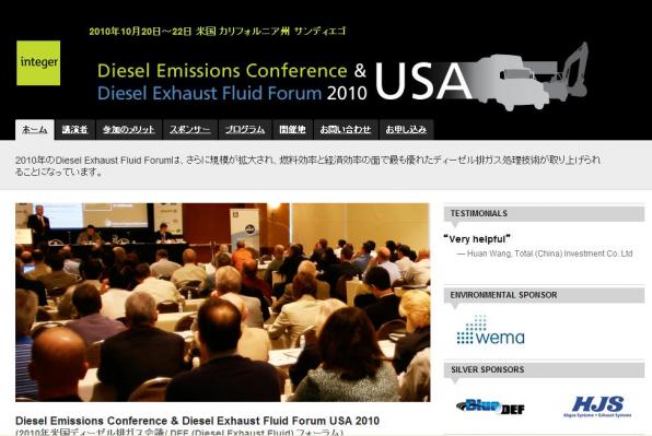 「Diesel Emissions Conference & Diesel Exhaust Fluid Forum USA 2010」の情報を提供するとともに、会議の参加のお申し込みを承っております。