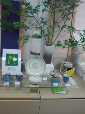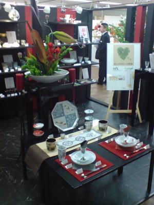 オオエックス2010年秋冬展示会(東京会場)、6月24日・25日開催。多数のご来場で会場いっぱいの得意先さまがた。商品の取り揃えバリエーションに好評をいただきました。正面メインでの「伝統技」や「迎春」ものはその各地各様の「技」ものに魅了。和モダンな生活の「シーン展開」として、「Jネクスト」「WA創」「とらっど」の3つのシーンを提案、特に斬新にモダン傾向を取り入れた「Jネクスト」が好評でした。新ブランドとして、土の香り、温かみを持ちながらも、現代風のデザインや機能(撥水効果など)を付加した「純」「リファイン」を発表。「純」はあくまで「和の持つ素朴さ」「純粋さ」にこだわりました。「リファイン」は、たとえば古の仏像が、今でこそ地肌による素の力を見せますが、作られた当時は実に華美なもの・・・そのような陽・陰併せ持つ日本独自の文化を「器」に込めてみました。なにより、その圧倒的な量で迫力満点だったのが「土鍋いろいろ」。一般の直火対応や普及率の著しいIH対応など、また「タジン」ブームや健康志向での「蒸し」料理タイプまでさまざまなタイプが揃っただけでなく、土色からカラフルな色彩ものまで、デザインやカラーも豊富。また様々なギフト商品や自家需要商品など、豊富な品揃えに皆さまがご満足げ。中でも、「デュラセラム」の高機能や、没後50年の「魯山人写し」の器には人気がありました。また出口付近に置かれた「ペットボトルキャップ回収」ボックスにも、社会貢献への責も垣間見え、ご参考にしていただけました。