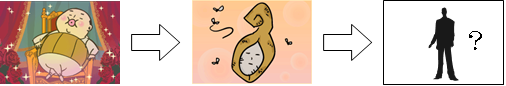「悪魔」「肉」「タバコ」「美女」が、デブオヤヂのハートに次々に浮かんでは消えていくので、