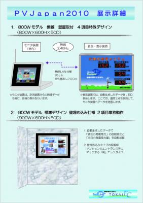 ・3桁×2項目から3桁×4項目又は6桁×2項目まで、太陽光発電用の計測データ表示(発電量、CO2削減量等多彩な表示内容)