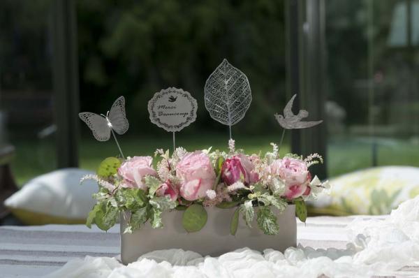 お花やグリーンによく似合うパピヨンやリーフなどを、細部にまでこだわって、繊細なエッチング加工でプレート風のピックに仕上げました。1mm前後の小さな「抜き」や「エンボス」を無数につけて1つ1つの模様を作り出すことで、上品で繊細なフォルムを作り出しました。厚さ約0.3mmの薄く柔軟なスチール素材なので、軽く曲げたりすることでリーフのナチュラルさを表現したり、パピヨンの躍動感を表現することができます。