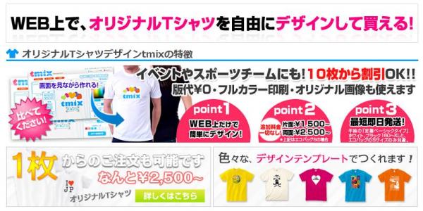 オリジナルTシャツのデザインサイト『tmix(ティーミックス)http://tmix.jp/』では、
