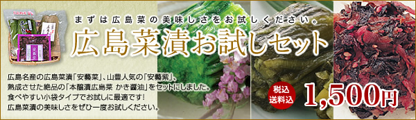 広島菜漬は初めて!という方に。送料税込みの1500円でお届けします。