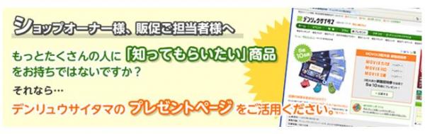 商品PRサービス:貴社(店)の商品を埼玉情報ポータルサイト「デンリュウサイタマ」サイトでPR。今だけ、創業100周年記念として100日間10企業(店舗)様無料掲載実施中!