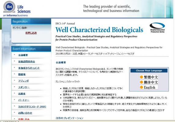 株式会社グローバル インフォメーションでは、皆様の利便性を図る為に、日本語、韓国語、中国語で「Well Characterized Biologicals」の情報を提供するとともに、会議の参加のお申し込みを承っております。