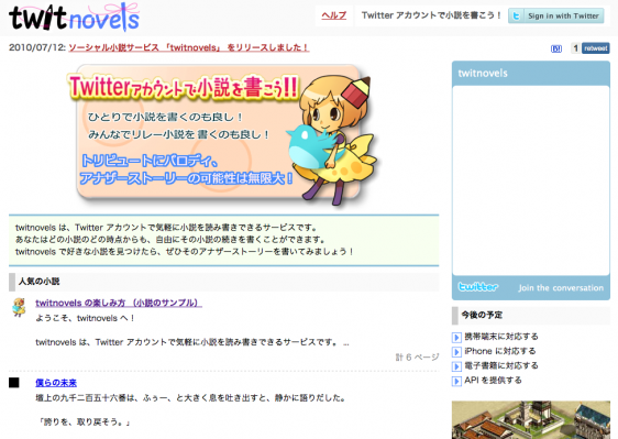 利用者は、Twitterにユーザー登録していれば、twitnovelsへのユーザー登録をせずにすぐに小説を書きはじめることができます。