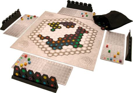 ゲーム途中でのボーナスプレイや、最終得点計算方法など随所にクニツィア博士ならではのひねりが加わっており、簡単なルールとパズル的なゲーム展開で、初心者でもすぐにプレイできる、病みつき必死の頭脳ゲームです。