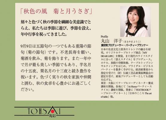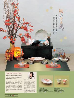 その先生にお書きいただいた、当社オオエックスの食器総合ブランド、「日本陶彩」での「秋のシーン」を大きく取り上げたカタログを準備しました。