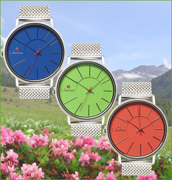 スイスの夏の青空・牧草地・アルペンローゼ-をイメージした色鮮やかなリベンハムデザインウォッチ発売!!