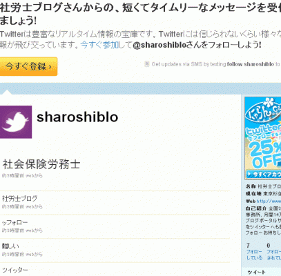 同社によると、「社労士ブログのツイッ ターも今週開設済みで、ブログのRSS配信で掲載しております」 http://twitter.com/sharoshiblo