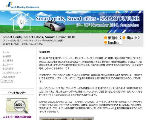 「Smart Grids, Smart Cities, Smart Future 2010 (スマートグリッドとスマートシティ - スマートな未来のための会議)」の情報を提供するとともに、会議の参加のお申し込みを承っております。
