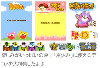 コンテンツ内容:楽しみがいっぱいの夏!「夏休み」に使えるデコメを大特集したよ♪