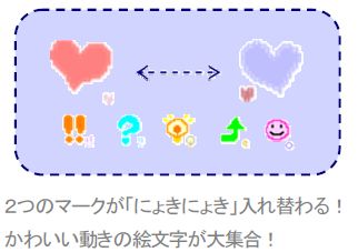 コンテンツ内容:2つのマークが「にょきにょき」入れ替わる!かわいい動きの絵文字が大集合!