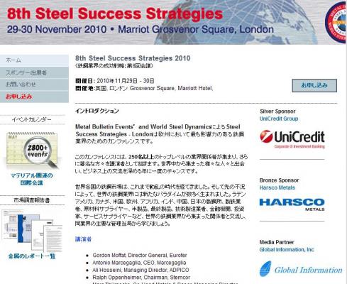 会議:「8th Steel Success Strategies 2010 (鉄鋼業界の成功戦略:第8回会議)」