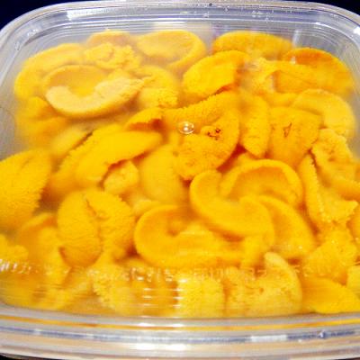一般的に売られている「折ウニ」は溶けるのを防ぐためにミョウバンを使用するため、味が若干、苦くなるのが特徴。