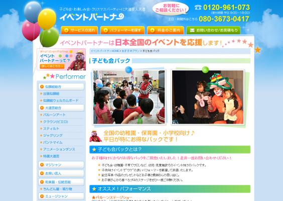 「イベントパートナー(http://www.event-partners.net/)」内のサービスとして、「子ども会パック(http://www.event-partners.net/plan/kids.html)」を開始しました。