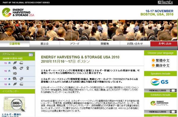 「Energy Harvesting & Storage USA 2010」の情報を提供するとともに、会議の参加のお申し込みを承っております。