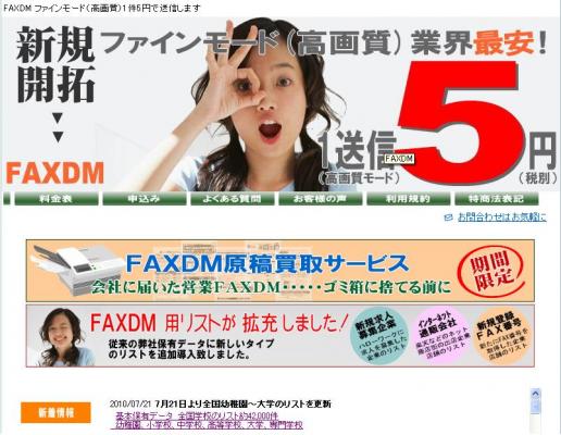 ファインモード画質でのFAXDM一斉送信サービスを1枚5円でご提供させて頂いております。