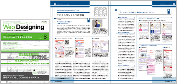 『Web Designing』は、Webクリエイティブのためのアイデアから、サイト構築・運営のための技術、Webプロモーションのトレンド情報までをカバーしたトータルデザイン誌です。企画制作担当である弊社取締役Webプロデューサー堀内玲子が「マイカウンセラー」企画の意図やコミュニケーション手法についてお話させていただき、“ロングテールをうながす「接客」というユーザーインターフェース”として122-123ページ「モバイルコンテンツ最前線」コーナーにて紹介されています。