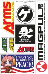 本誌「アームズマガジン」のロゴをはじめとして、「ゲリラリラ」、「GAT」、さらに人気の「マグプルオフィシャル」など、盛りだくさんの1枚!