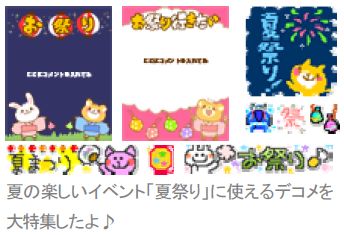 コンテンツ内容:夏の楽しいイベント「夏祭り」に使えるデコメを大特集したよ♪