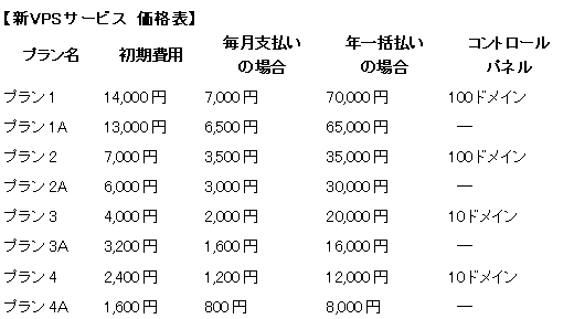 Joe'sウェブホスティング(本社: 大阪市北区梅田, 代表: 鈴木禎子)では、VPS (仮想専用サーバー)のサービスに、従来の1サーバー3ユーザ(月額7,000円)、10ユーザ(月額3000円)の上位プランに加え、40ユーザ(月額1600円), 100ユーザ(月額800円)の下位プランを追加した。さらにそれぞれにサーバー管理コンパネPleskの利用可(上位プランで100ドメイン用 月額500円の追加、下位プランで10ドメイン用 月額400円の追加)・不可の両方のプランを用意した(計8プラン)。