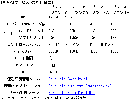 1.Parallels社製品を利用したVPSでは、大半が大手ホスティング提供会社の再販としてサービスを提供しているため、下位プランでも割高になっている場合が多い。