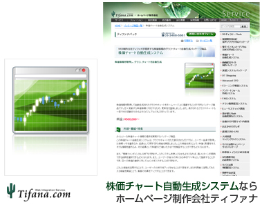 「株価チャート自動生成システム」は、株価情報を取得して自動生成されたグラフやチャートをホームページ上に掲載できるパッケージで、株価情報を求めるユーザーにタイムリーな情報提供が可能になります。グラフやチャートを表示させるだけでなく、ユーザー自身で取得した情報・メモを書き込み保存できる機能を実装しており、株価に影響を与えそうな情報を書き込み、その結果として株価がどのように動いたかといったことを検証することができます。その他「簡単ファンダメンタル分析」「マイ株」といった利用者に活用してもらえる様々な機能を実装しているため、集客効果も期待できます。