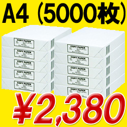 5,000枚で2,380円(税込)。つまり1枚あたり約0.4円という、コピー用紙業界の中では最安値クラスの価格にて販売中。