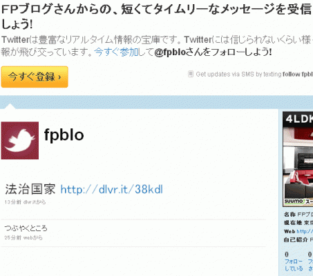 同社によると、「FPブログのツイッターも昨日開設済みで、ブログのRSS配信で掲載しております」 http://twitter.com/fpblo
