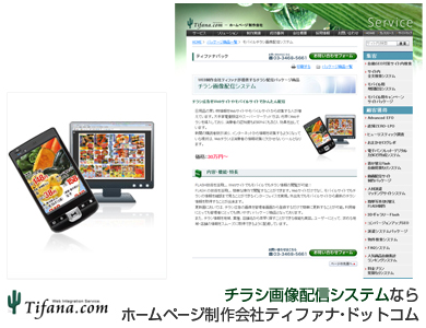 「チラシ画像配信システム」の詳細は弊社ホームページ(http://www.tifana.com/package/flier.html)をご覧下さい。