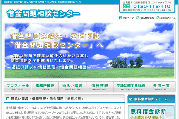 「借金問題相談センター」の概要は ・債務に関するお悩み相談 ・過払い請求に関するご相談 ・債務整理・任意整理に関するご相談 ・自己破産に関するご相談 などに(無料相談を含む)ご対応する 西頭司法書士事務所様のホームページです。