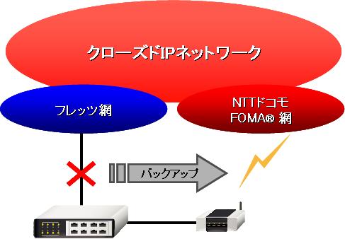 本サービスは、MVNEである日本通信株式会社(以下 JCI /本社:東京都品川区、代表取締役社長:三田 聖二)の法人向けI・Care3Gデータ通信サービス網と閉域接続することにより、FOMAハイスピード対応エリアで、下り最大7.2Mbps、上り最大2.0Mbpsの高速モバイル通信をバックアップ回線として月額定額にてご利用いただけます。