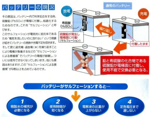このスーパーSRSを注入することによって電極面に付着するサルフェーションをコロイド活性化機能により剥離し新しく