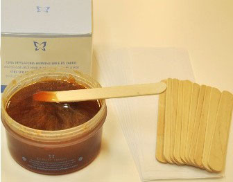 通常、プロが行う施術方法はヘラでワックス剤をすくいとり、直接お肌に塗布していくのが正しい施術方法のようですが、素人でも簡単にできちゃう方法が、ペーパーにワックス剤を直接塗りつけ、それをお肌にしっかりと貼り付けて一気に剥がすといった感じ。