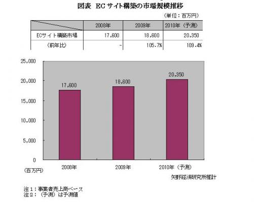 経済産業省の調べによれば、BtoC-ECの市場規模は二桁成長を継続しており、その高成長に伴ってECサイト構築市場も拡大してきた。しかし、景気低迷を背景とした投資冷え込みにより、2009年には186億円と、前年から5.7%の成長に止まった。