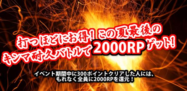 打つほどにお得!この夏最後のキンマ耐久バトルで2000RPゲット!