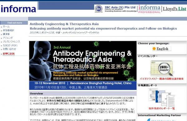 会議:「Antibody Engineering & Therapeutics Asia 2010」