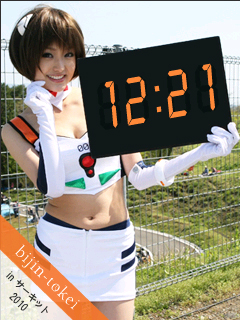 美人時計に寄せられる多くのリクエストに答える形で、美人時計の公式モバイルサイト(DOCOMO、AU、SOFTBANKの3キャリアに対応)美人時計サーキット版がオープンしました。PC版と同じくいつもの美人時計が見られるだけでなく、レースクィーン限定の待ち受けFlashや待ち受けカレンダーがダウンロードできます。