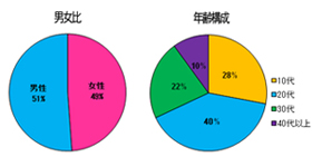 10代、20代のみではなく40代以上のユーザーにも幅広くサービスをご利用して頂いております。