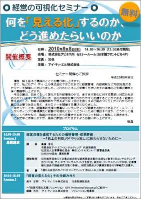 そこで本セミナーでは、経営革新支援において豊富な経験をお持ちの高橋淳氏に、やりっ放しに終わらせない「経営の見える化」のポイントを解説して頂きます。